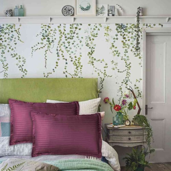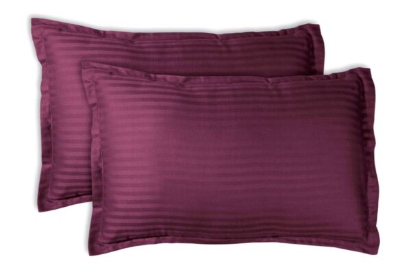 “Cotton pillow covers with a satin stripped weave and hemmed edges.”